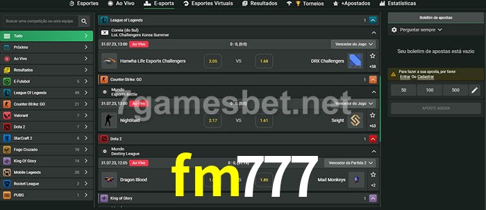O fm777 oferece uma grande seleção de opções de apostas em e-sports com probabilidades competitivas